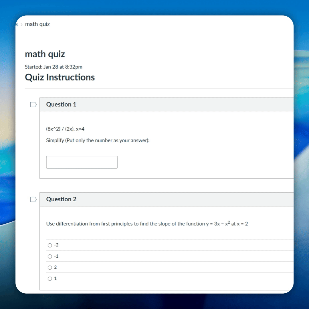 I tested it with my relaxed professor (cheated on a Canvas test both with and without it) and they said Quiz Shot showed nothing on their end. It WORKS PERFECTLY!!! Thanks!